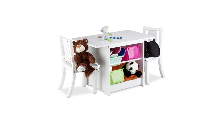 ALBUS Gyerekasztal Tárolókkal és Székekkel Az ALBUS Gyerekbútorunk teret ad a kicsiknek játszani, enni, vagy éppen egymással beszélgetni és még sok más tevékenységhez is. Két szék és egy asztal, valamint 4 darab műanyag tárolódoboz, amibe a kicsik játékait, festő és rajzoló eszközeiket elpakolhatják.