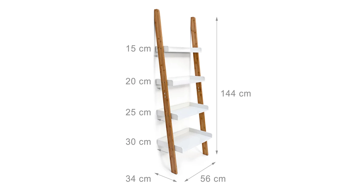 Nagyobb rendre vágyik vagy csak egy stílusos lakberendezési kiegészítőre vágyik az otthonában, de nem akarja telezsúfolni az életterét terjedelmes polcokkal? A BAMBOO létrapolc fehér polcaival vizuálisan kibővíti a helyiséget, ugyanakkor értékes tárolóhelyet kínál képek, virágok és még sok más egyéb számára. A BAMBOO kollekció 4 különböző szinten elhelyezett polca modern megjelenésével szinte minden belső térbe illeszkedik. A bambusz oldallapok az létrapolcot is dekorációs elemmé teszik akár a fürdőszobában is. A 4 emelet lépcsőzetesen van elrendezve és fehérre lakkozott MDF elemekből áll. A fali polc stabil és dekoratív tárolóhelyet kínál az otthonában. A natúr színű kivitel modernebb verzióban Négy darab különböző méretű polccal, amely peremmel ellátott A polcok, nedvességálló , fehérre lakkozott MDF alapanyagból készültek, így alkalmas lehet a termék nedves helyiségekben történő elhelyezésre is, kozmetikumok vagy akár törölközők is tárolhatóak rajta Egyszerű összeszerelhetőség, az összes szükséges kötőelemmel a csomagban