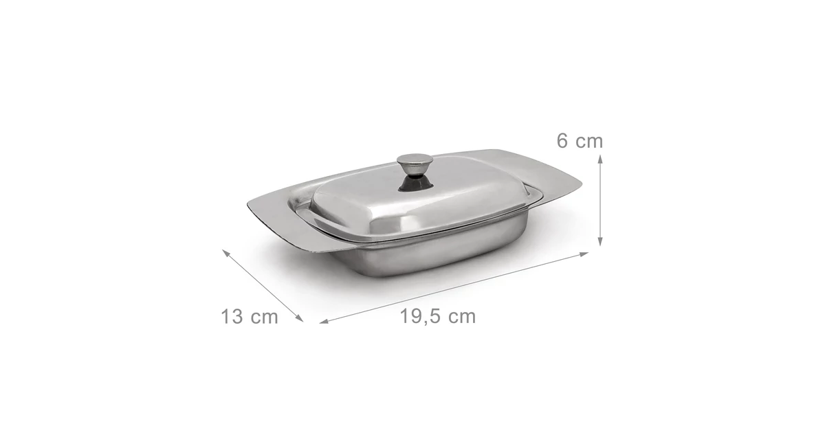 A Modern rozsdamentes acél vajtartó praktikus és esztétikus konyhai kiegészítő, amely tökéletes választás minden modern konyhába. Ez a stílusos vajtartó nemcsak a vaj frissen tartásáról gondoskodik, hanem elegáns megjelenésével a terített asztal dísze is lehet. A fedeles vajtartó kialakítása segít megőrizni a vaj állagát és ízét, miközben védi azt a külső szennyeződésektől és a hűtőszekrényben lévő szagoktól.