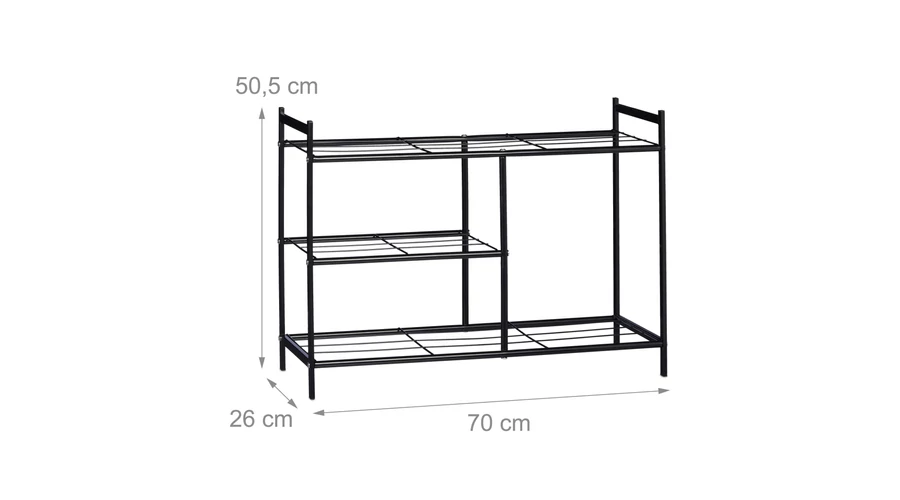 körülbelül 8 pár cipőnek elegendő hellyel Extra magas rekesz a csizmák és a magasabb szárú cipők számára Fogantyúkkal ellátott, így könnyedén áthelyezhető, akár a cipőkkel együtt is Könnyen és gyorsan összeszerelhető kialakítású Polcként cipőknek, de táskáknak, dobozoknak és sok más egyébnek is alkalmas lehet Masszív acél vázszerkezet Teljes méretek: kb.50,5 x 70 x 26 cm (Max Sz x Mé) Polcok közötti távolság: kb 17,5 cm Magasított rekesz magassága: kb 36 cm Magasság a padlótól: kb 5,5 cm Az egyes keresztmerevítők közötti távolság: kb. 6 cm Nagyobb polcfelület mérete: kb 66,5 x 26 cm (Szé Mé) A kisebb polcfelület mérete: kb. 35 x 26 cm Anagya: Acél, porszórt felületkezeléssel Súlya körülbelül 1,8 kg Szín: Fekete